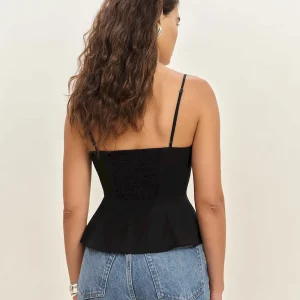 The model is wearing a size 2 and is 5’9.5″, 25″ waist, 36″ hips, 34″ bust.
