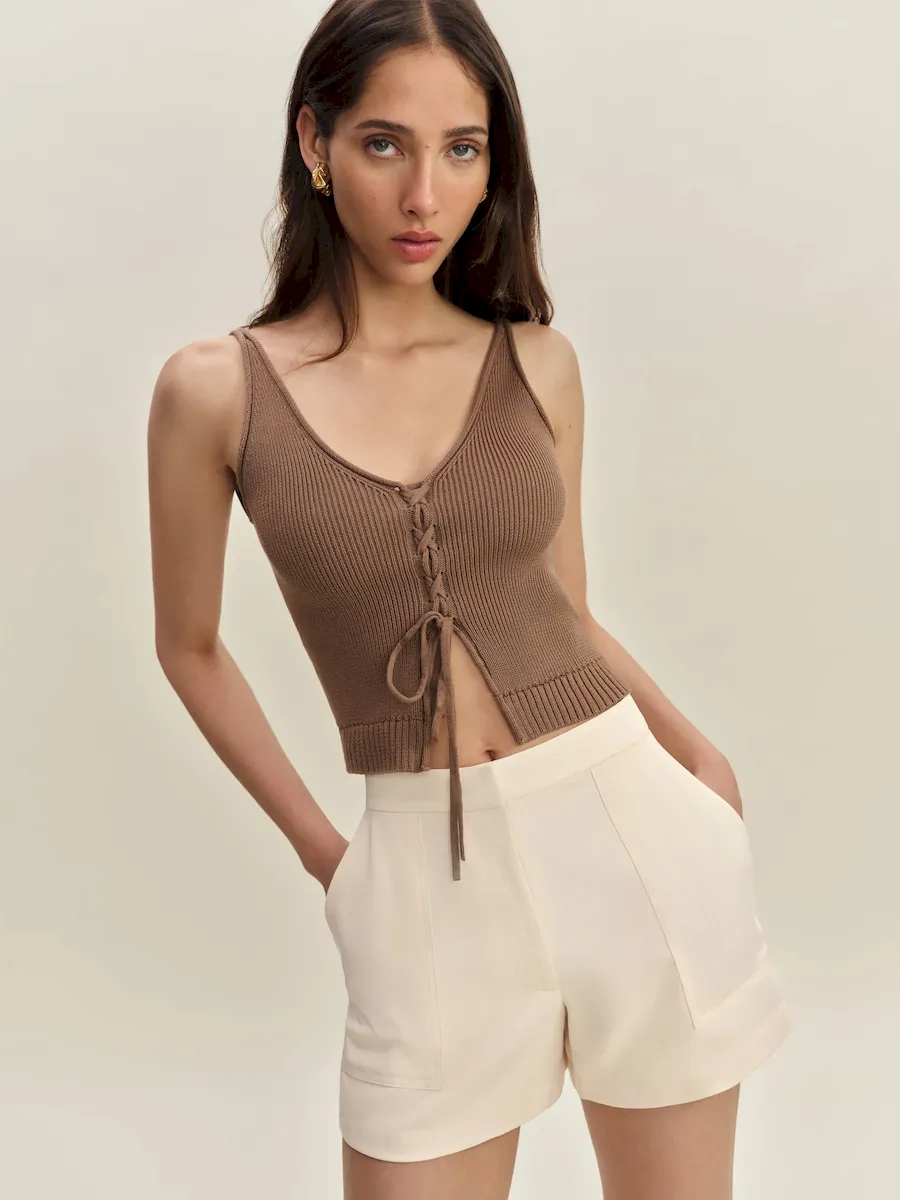 The model is wearing a size 2 and has a 23″ waist, 34″ hips.