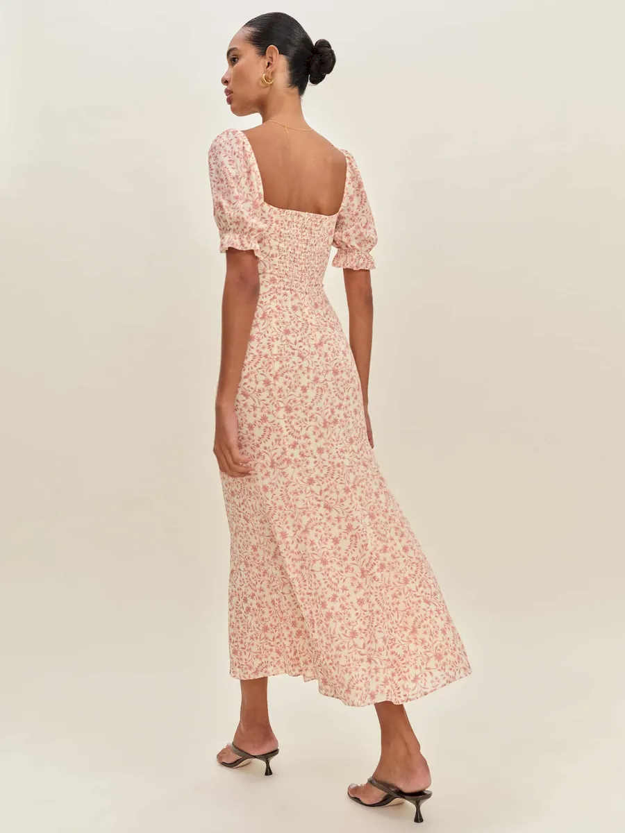 back smocking, curve neckline.