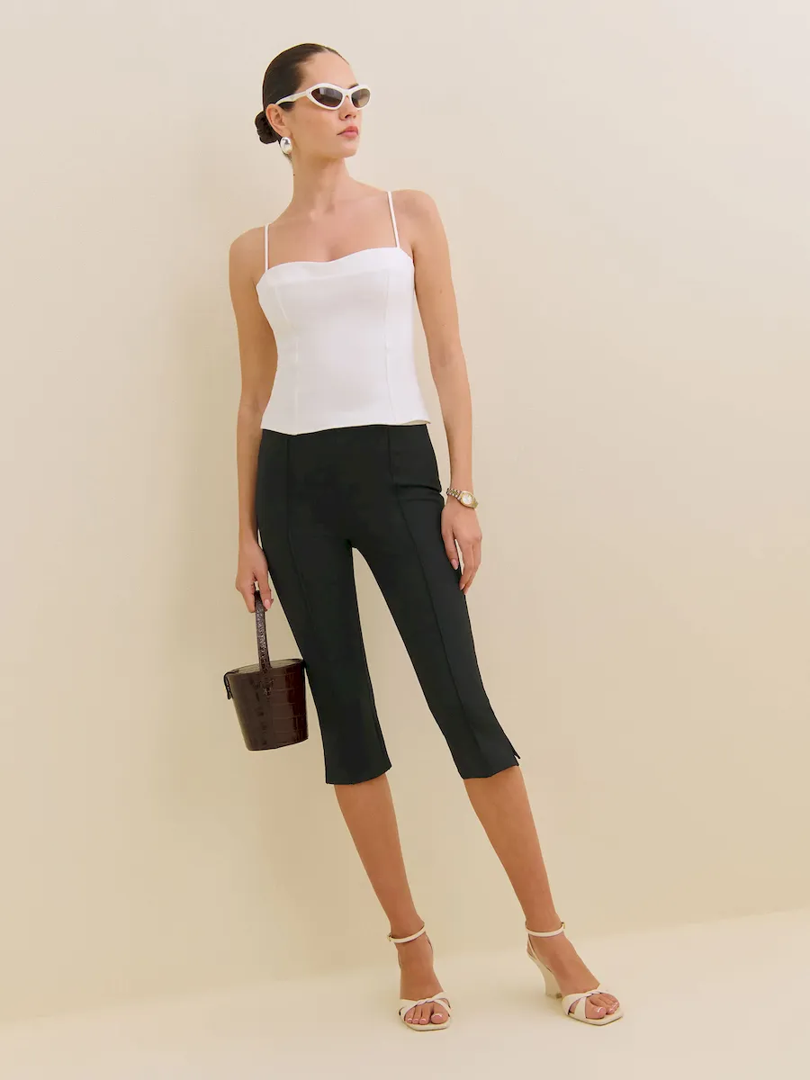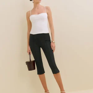 The model is wearing a size XS and has a 24″ waist, 34″ hips.