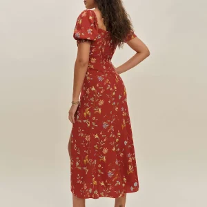 back smocking, square neckline, front slit.