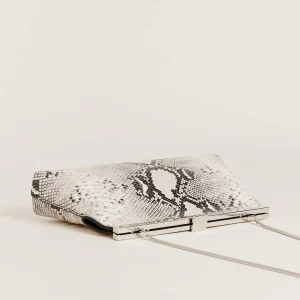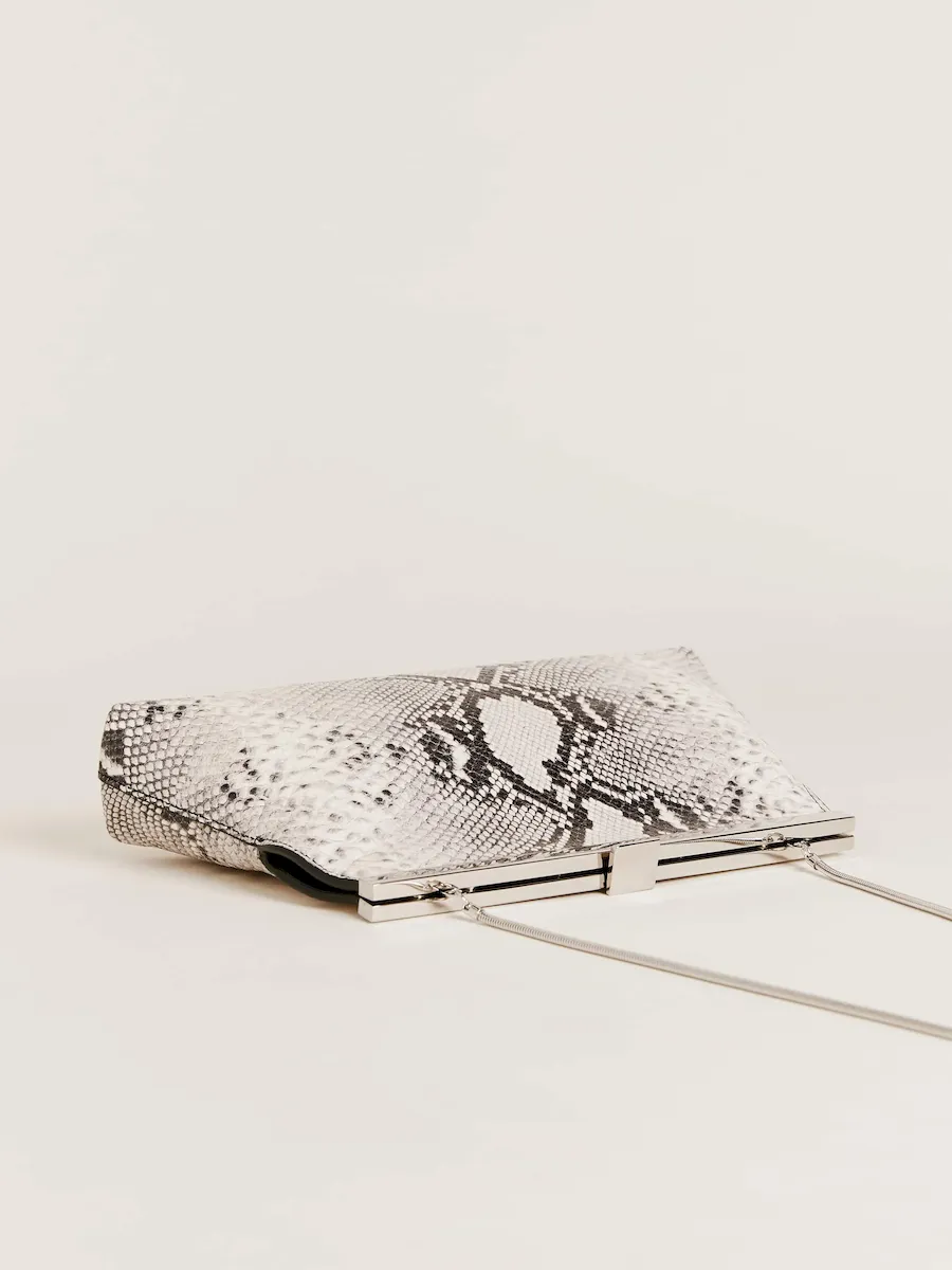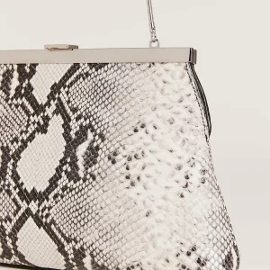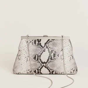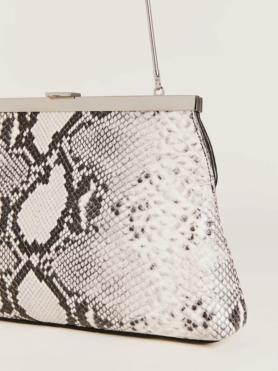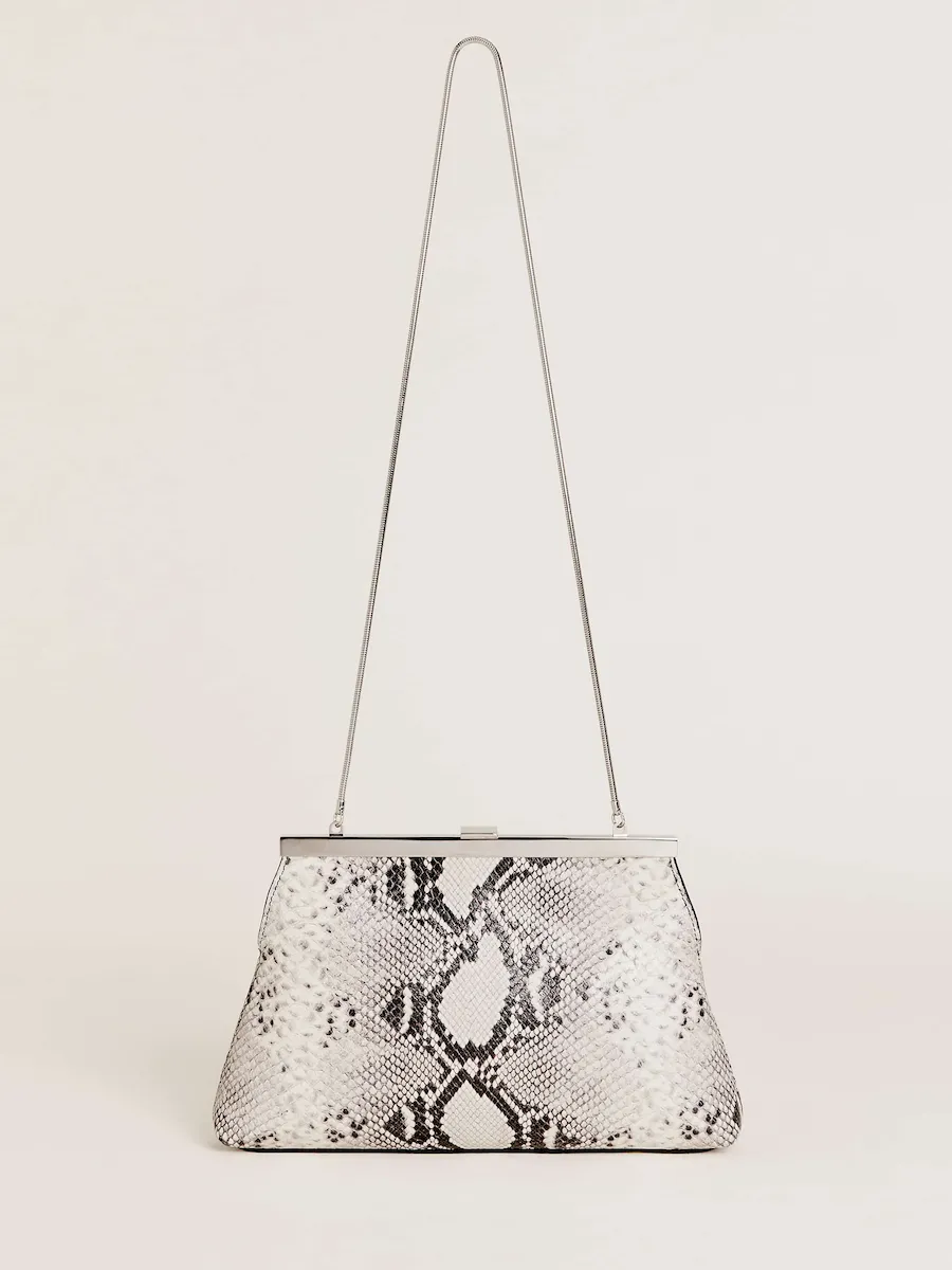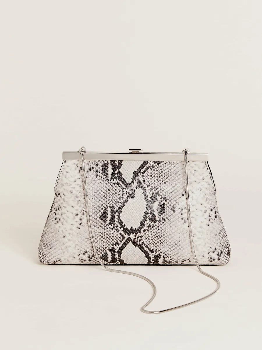 Round bodied bovine leather with a python emboss and a shine finish. Spot clean. More onfabric & care.