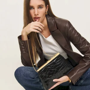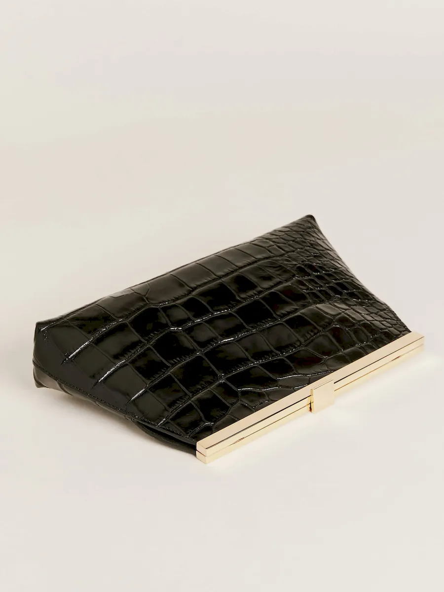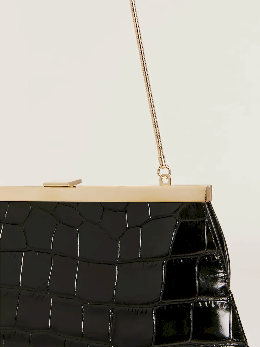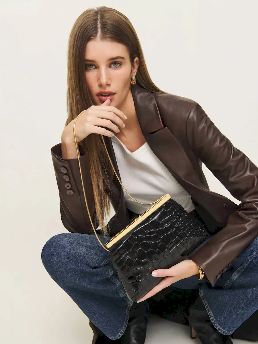 An oversized tailored croc embossed bovine skin.