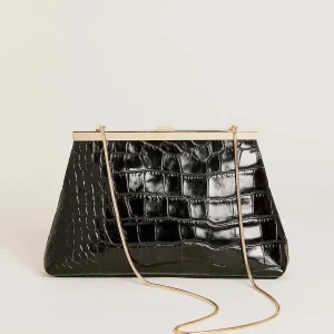 a vintage inspired clutch with a chain shoulder strap.