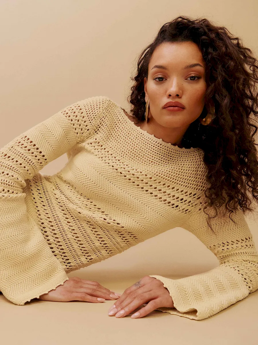 The model is wearing a size XS and is 5’10”, 23″ waist, 34″ hips, 32″ bust.