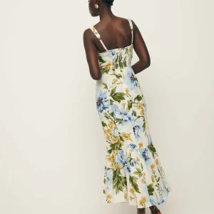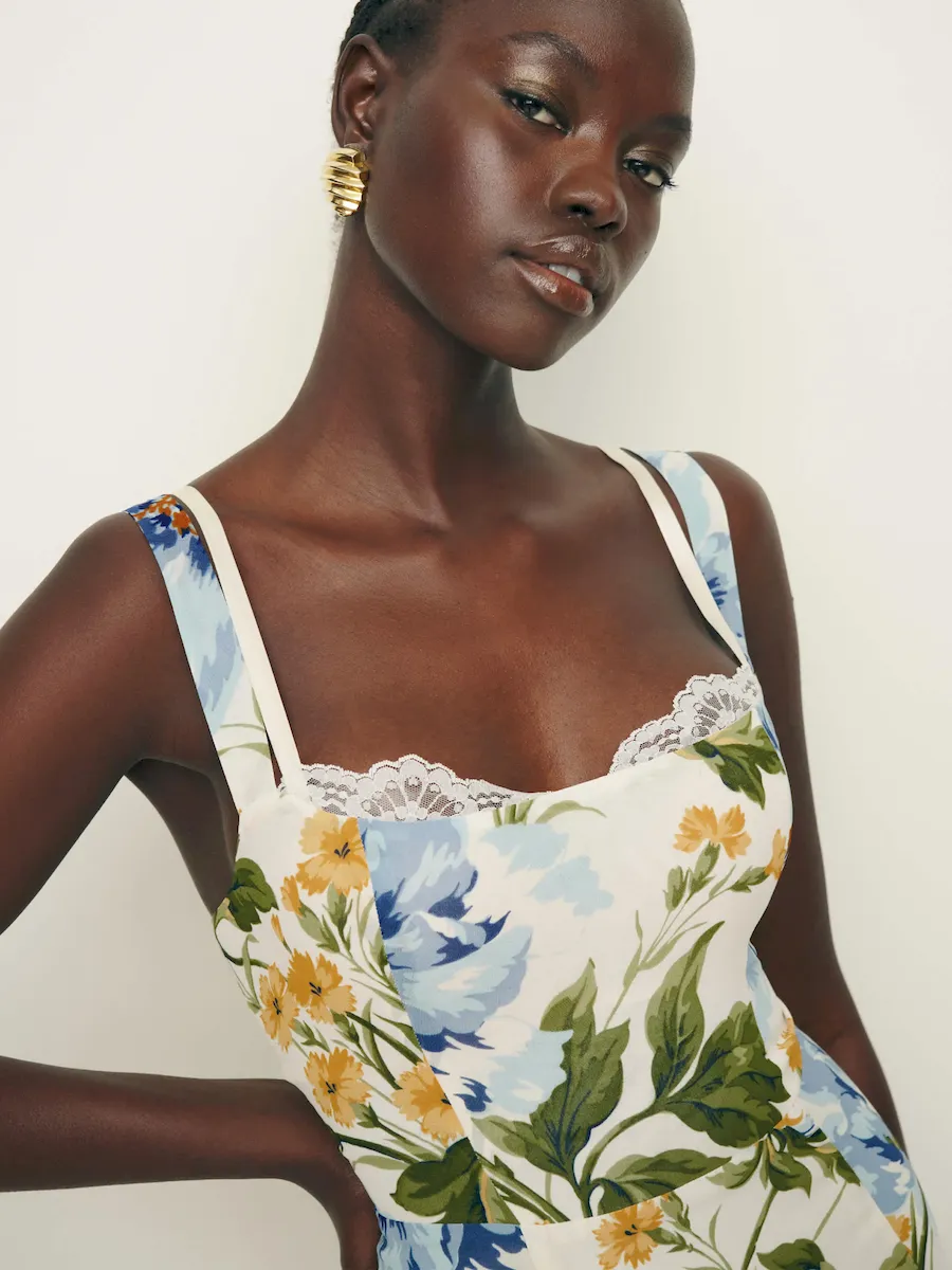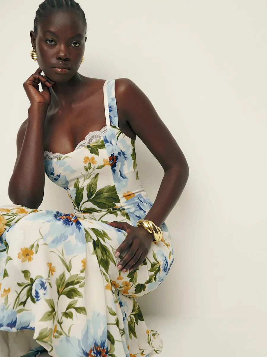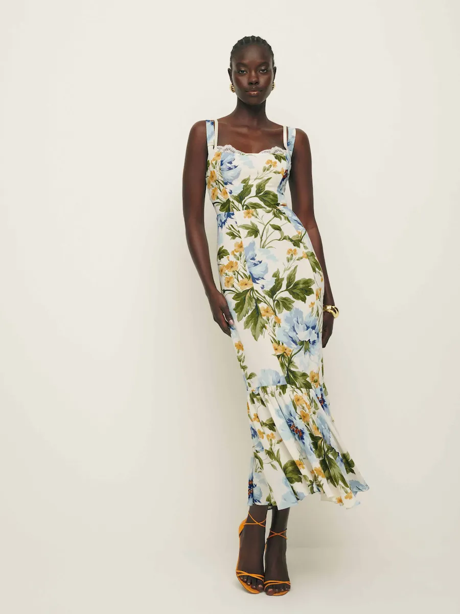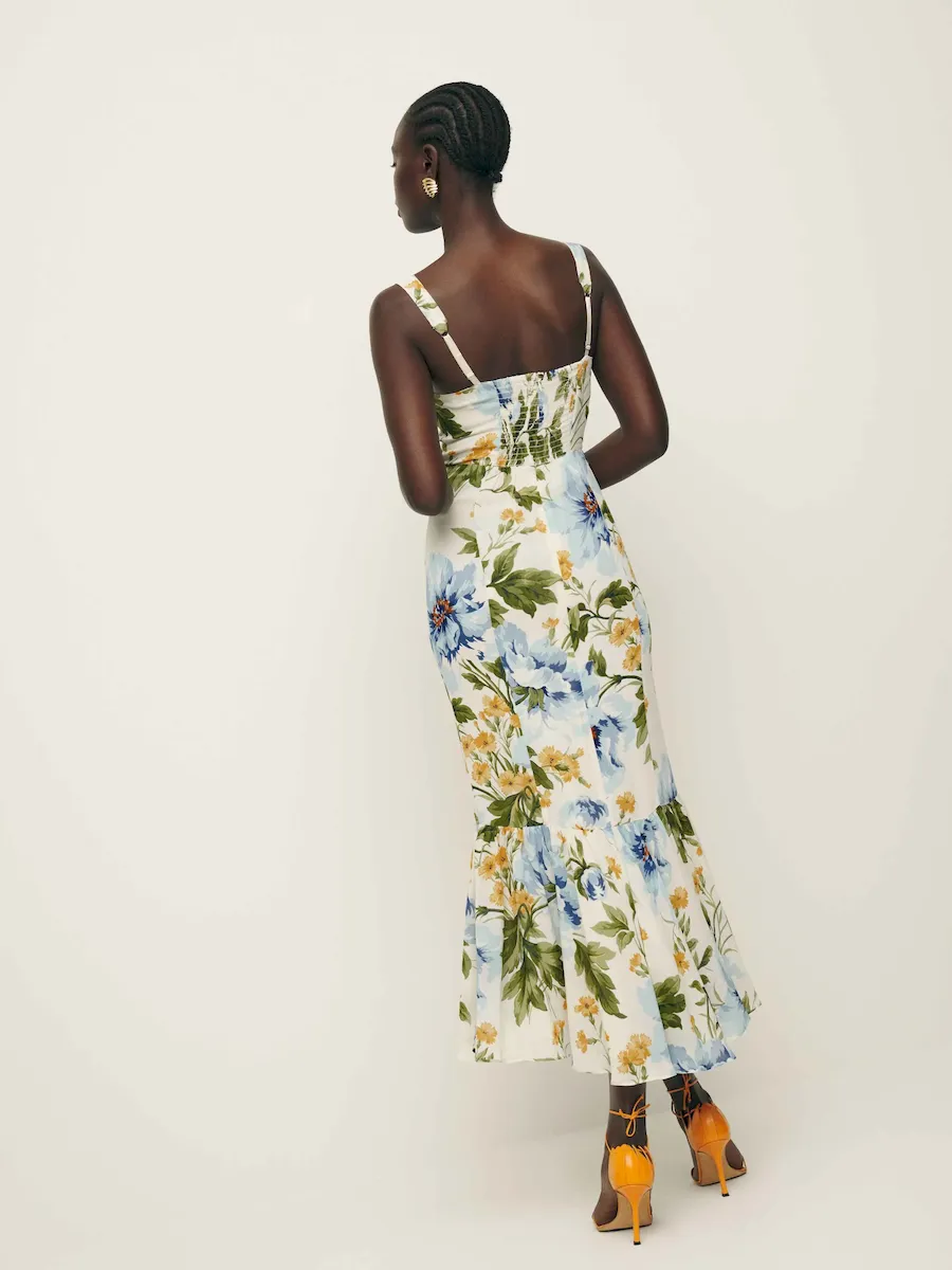 back smocking, adjustable straps, sweetheart neckline, back slit.