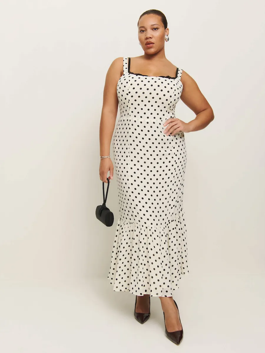 The model is wearing a size 14 and is 5’9″, 34″ waist, 45″ hips, 41.5″ bust.