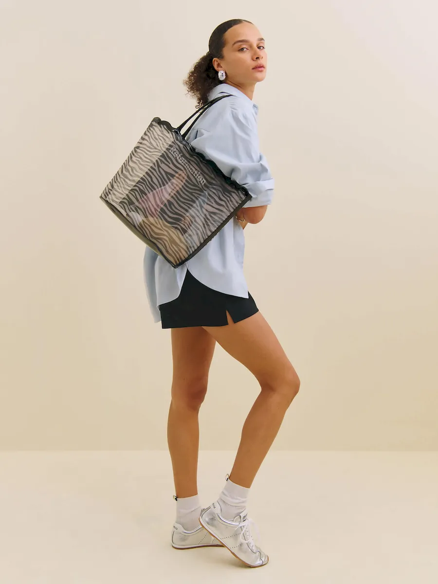 Recycled polyester illusion mesh. Spot clean. More onfabric & care.