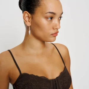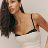 The model is wearing a size 0 and is 5’10”, 23″ waist, 34″ hips, 32″ bust.