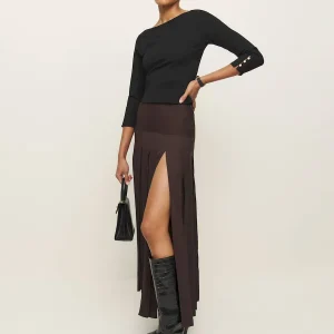The model is wearing a size XS and is 5’11”, 24″ waist, 34″ hips, 32″ bust.