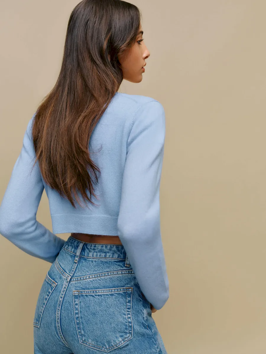 This is a fine-gauge recycled cashmere blend sweater knit – 95% Recycled Cashmere, 5% Cashmere. Hand wash + dry flat. More onfabric & care.