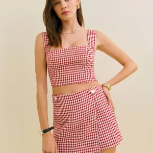 The model is wearing a size 0 and is 5’9″, 24″ waist, 34″ hips, 32″ bust.
