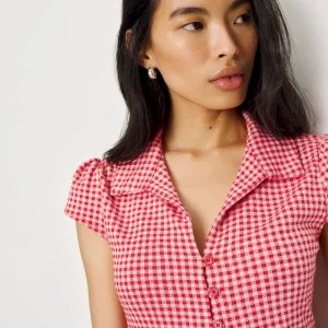 The model is wearing a size XS and is 5’10”, 24.5″ waist, 34.5″ hips, 31″ bust.