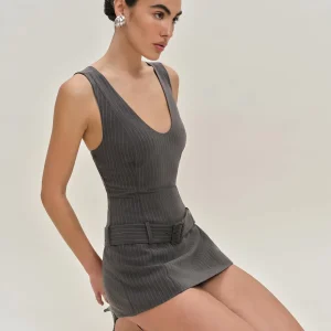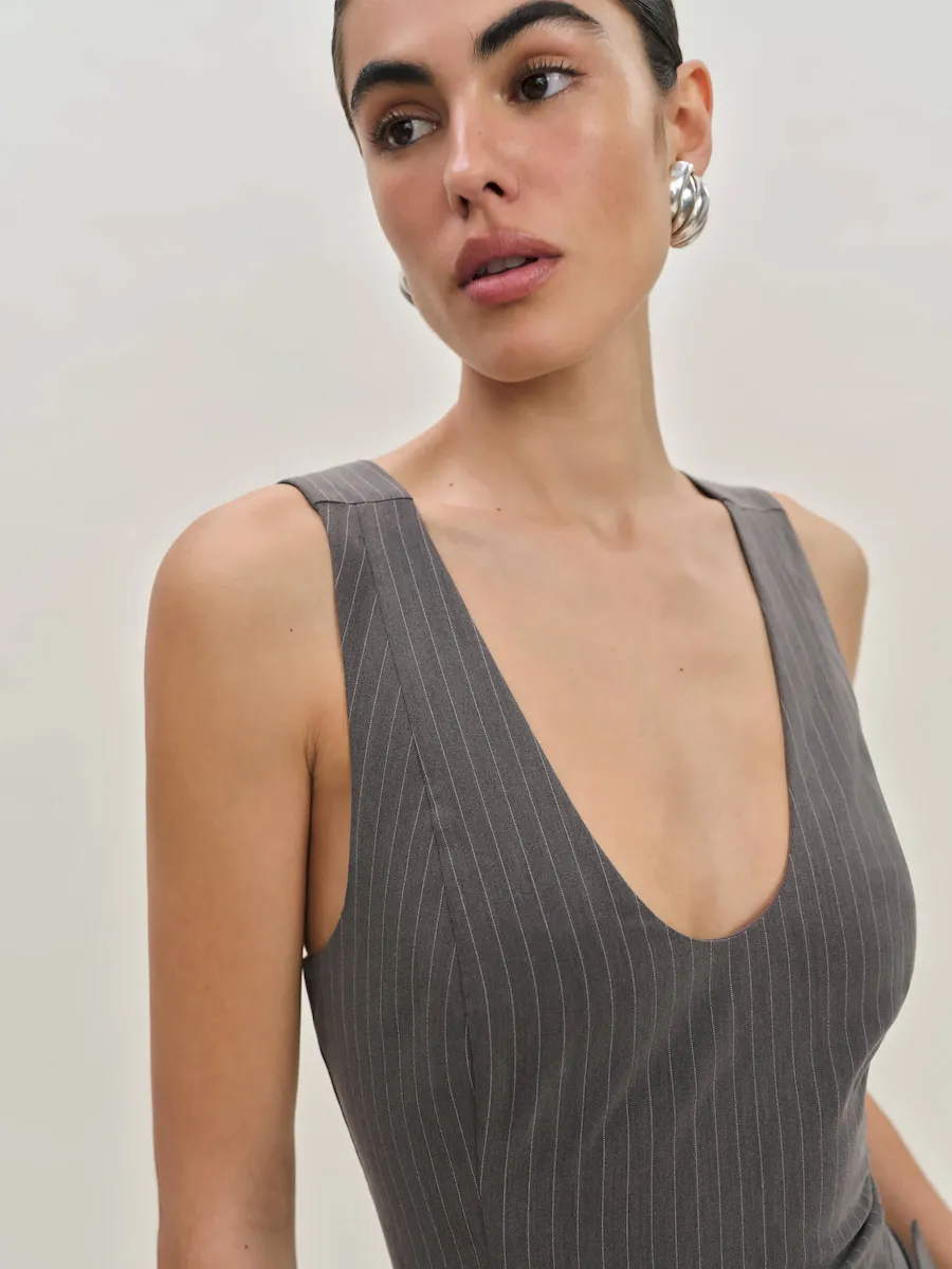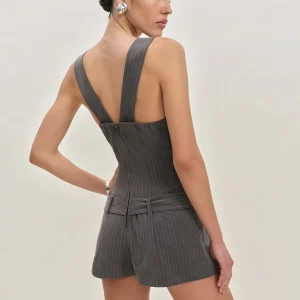 The model is wearing a size 0 and is 5′ 9.5″, 24″ waist, 34.5″ hips, 34″ bust.