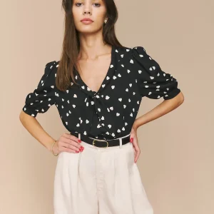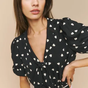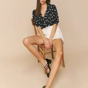 The model is wearing a size XS and is 5’9″, 24″ waist, 34″ hips, 32″ bust.