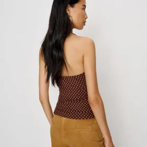 The model is wearing a size XS and is 5’10”, 24.5″ waist, 34.5″ hips, 31″ bust.