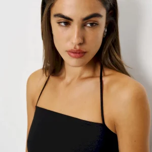 The model is wearing a size XS and is 5′ 9.5″, 24″ waist, 34.5″ hips, 34″ bust.