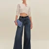 The model is wearing a size 0 and is 5′ 9.5″, 24″ waist, 34.5″ hips, 34″ bust.