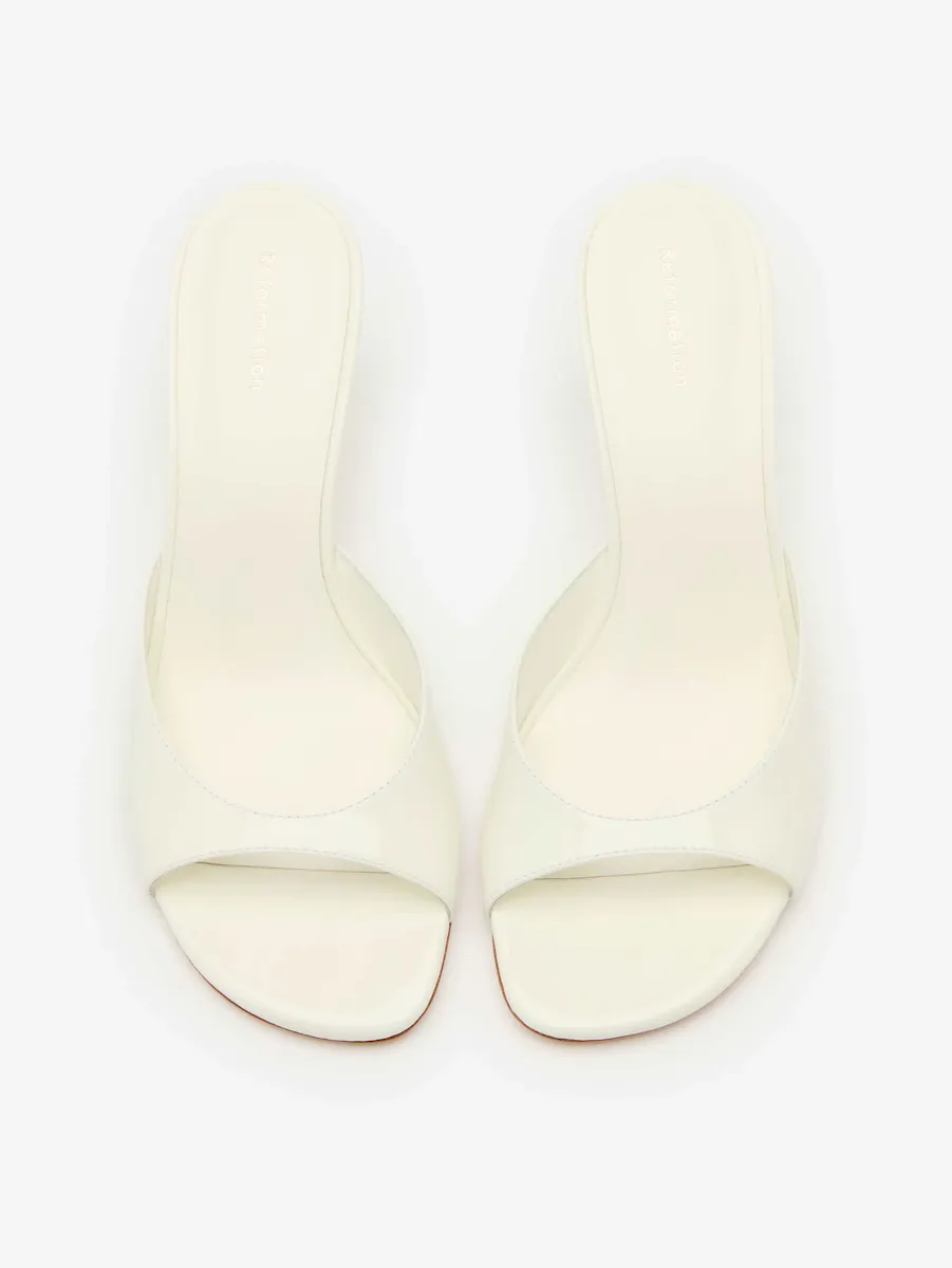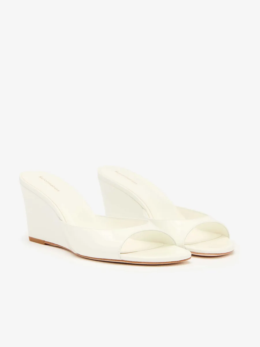 Bovine leather with lustrous patent finish. Spot clean. More onfabric & care.