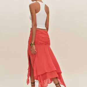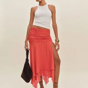 The model is wearing a size 0 and has a 24″ waist, 35″ hips.
