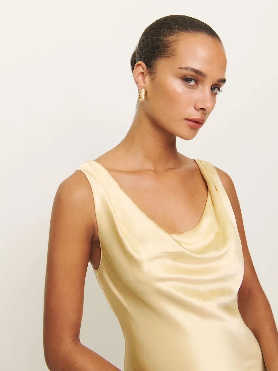 This is a lightweight silk charmeuse fabric – 100% silk. Dry clean only. More onfabric & care.