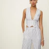 The model is wearing a size 0 and is 5’9″, 24″ waist, 34″ hips, 32″ bust.