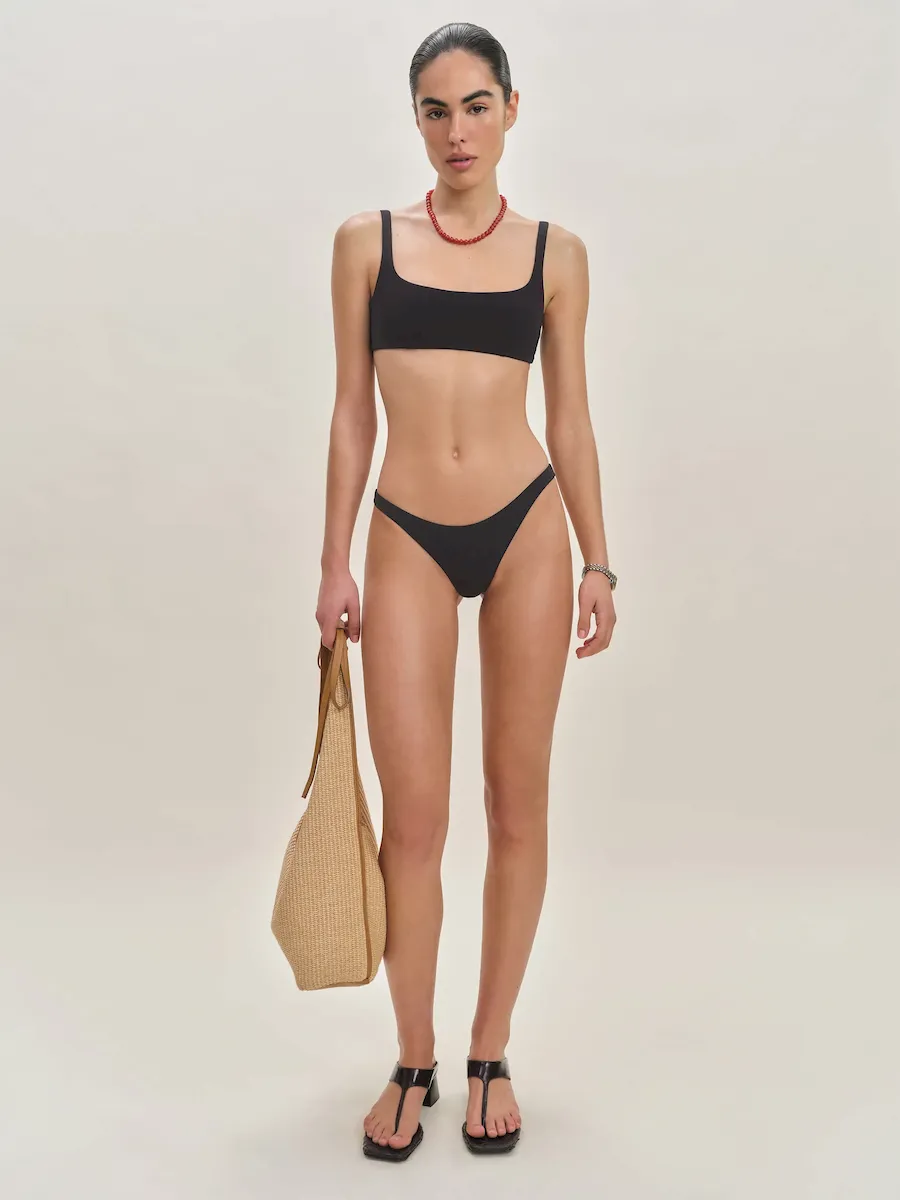 EVO by Fulgar®️ is a polyamide fiber that’s made with renewable, naturally growing plants instead of petroleum. Same stretch and durability as a regular nylon bathing suit minus all the fossil fuels.