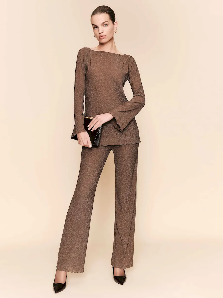 The model is wearing a size XS and is 5’10”, 24″ waist, 35″ hips, 31″ bust.