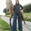 The model is wearing a size 0 and is 5’9″, 24″ waist, 34″ hips, 32″ bust.