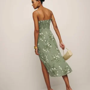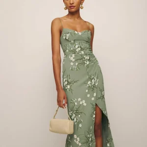 The model is wearing a size 0 and is 5’11”, 24″ waist, 34″ hips, 32″ bust.