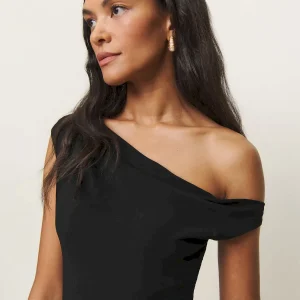 asymmetric neckline.