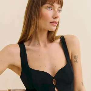 The model is wearing a size 2 and is 5’9″, 25″ waist, 36.5″ hips, 34″ bust.