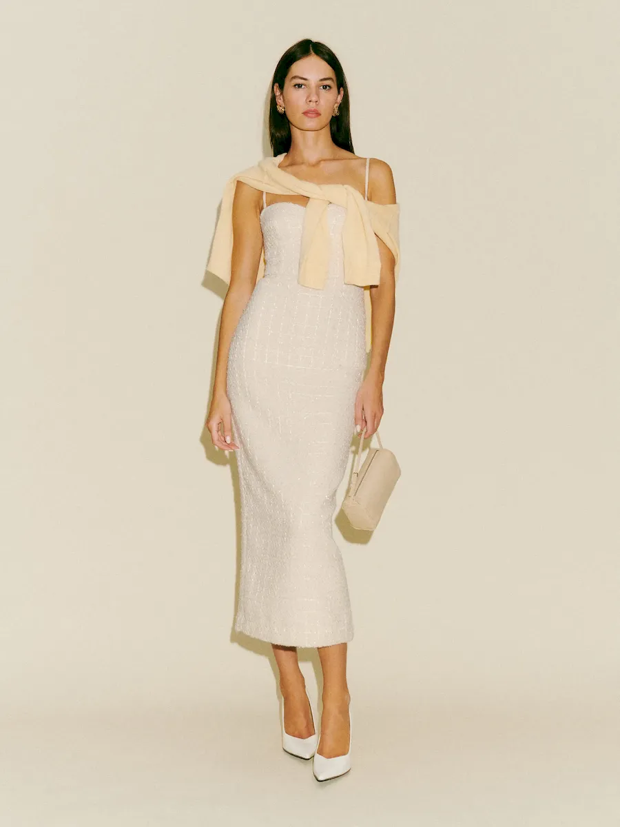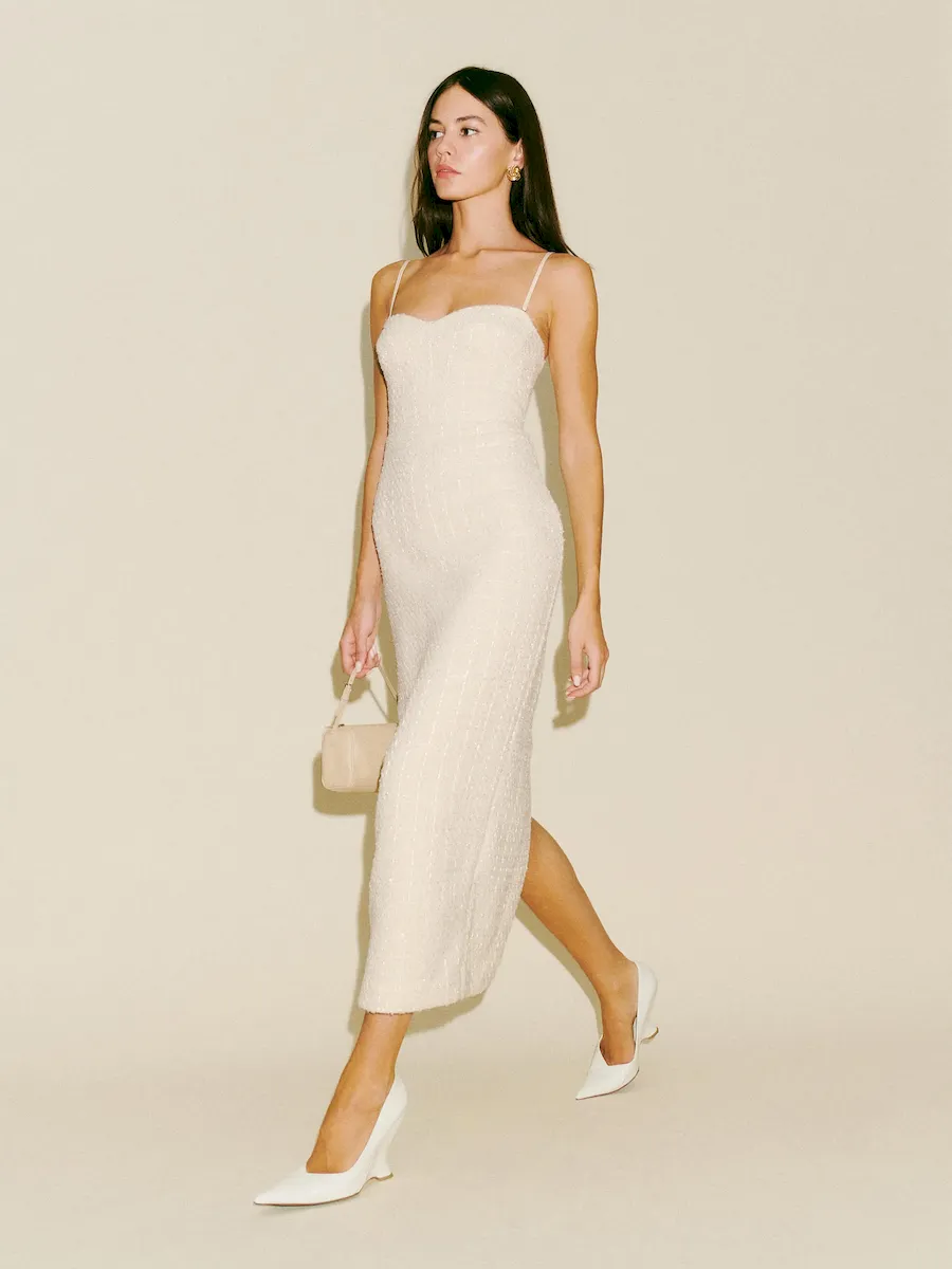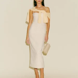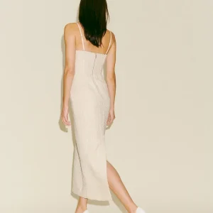 The model is wearing a size 0 and is 5’9″, 24″ waist, 34″ hips, 32″ bust.