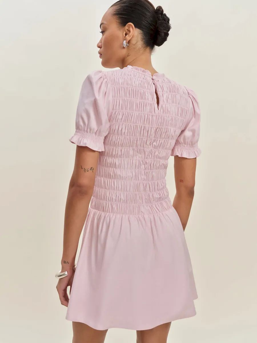 full bodice smocking, crew neckline.
