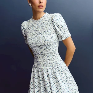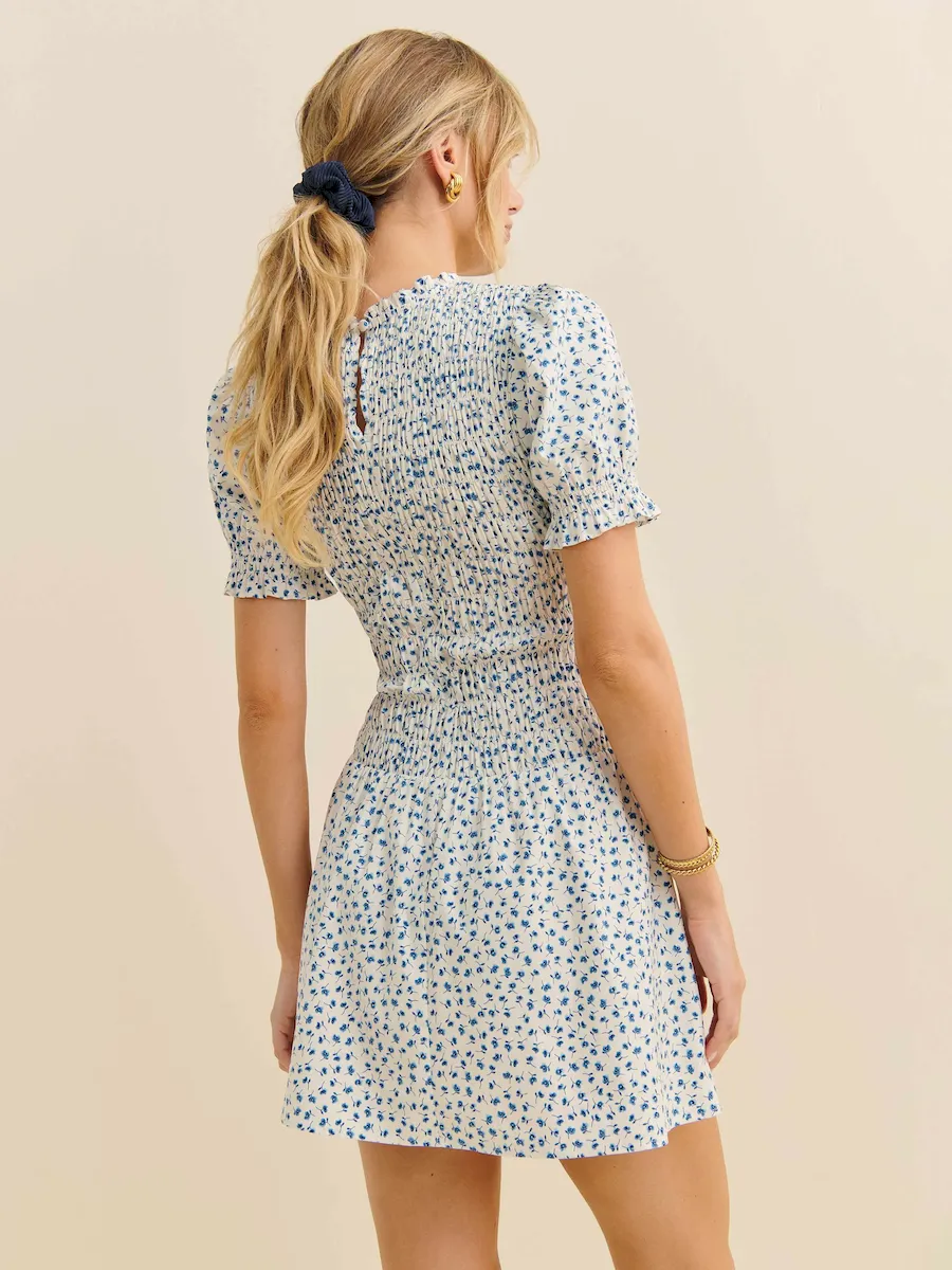 full bodice smocking, crew neckline.