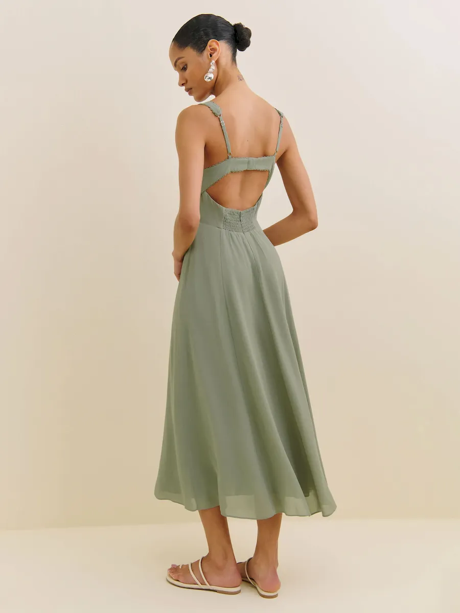 back smocking, sweetheart neckline.