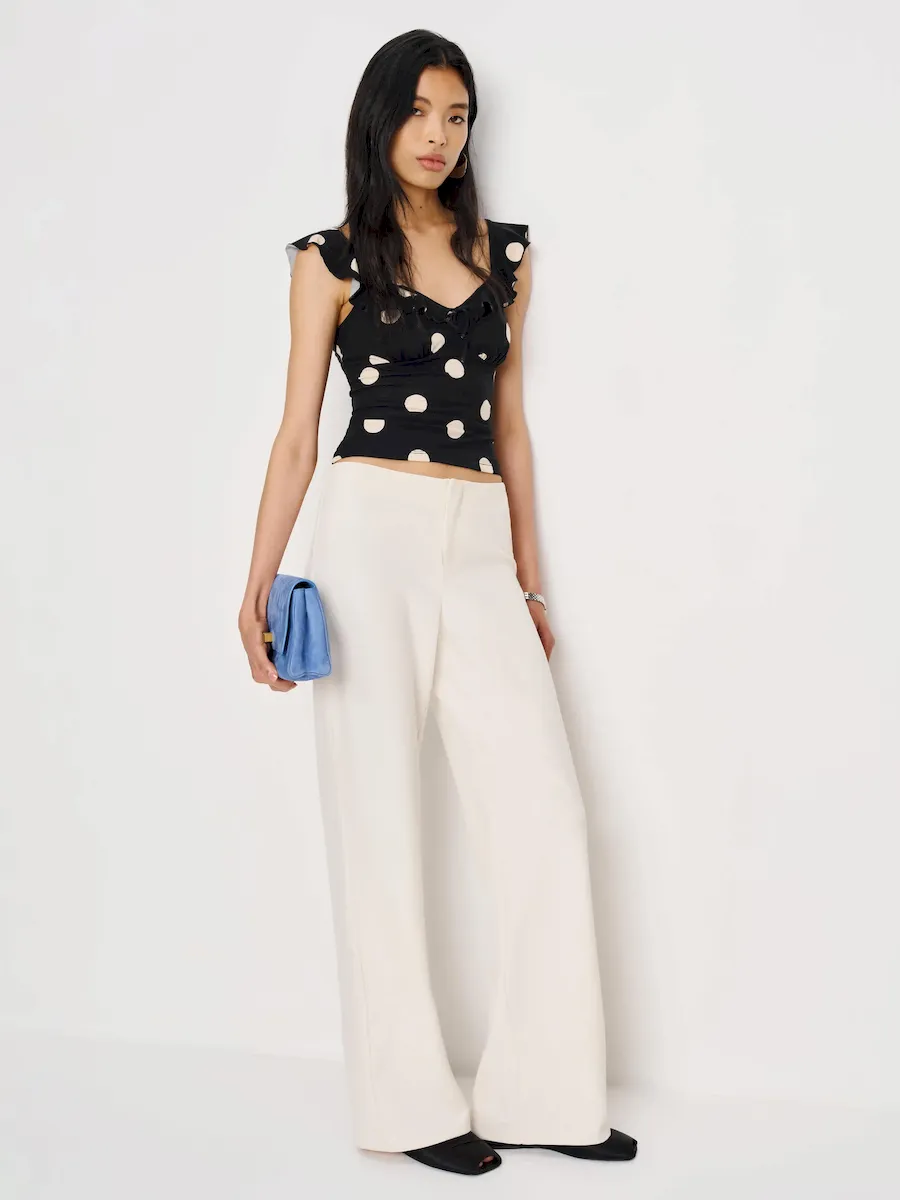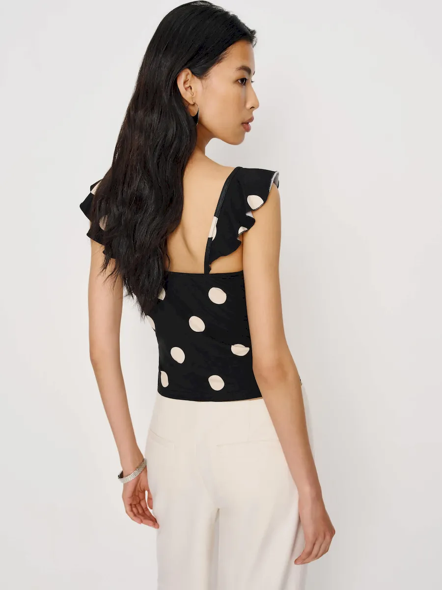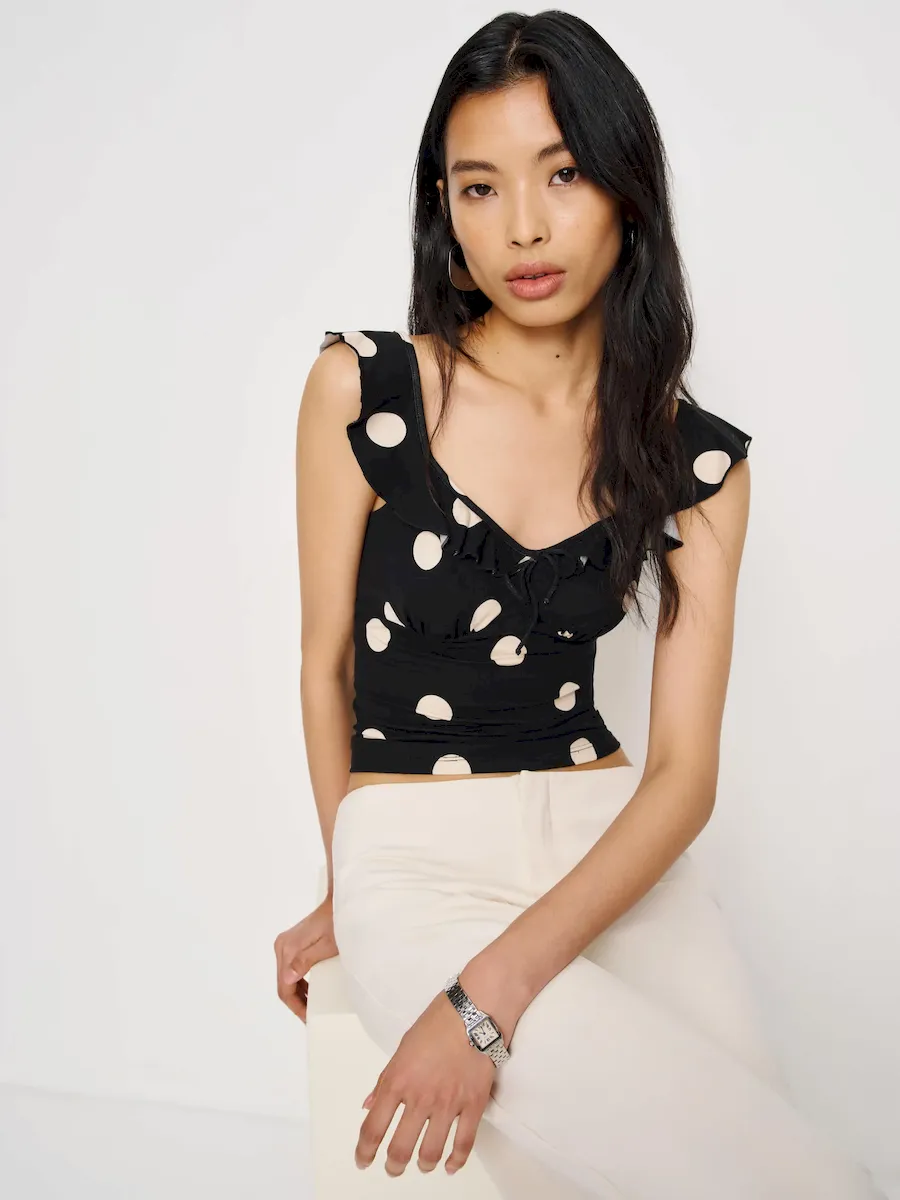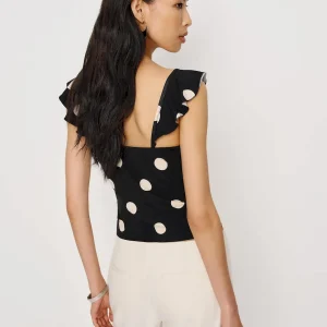 The model is wearing a size XS and is 5’10”, 24.5″ waist, 34.5″ hips, 31″ bust.