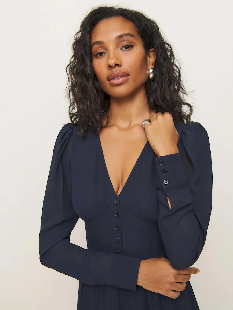 The model is wearing a size 2 and has a 24.5″ waist, 35.5″ hips, 32″ bust.