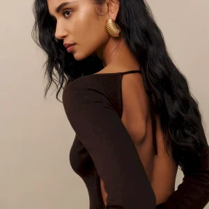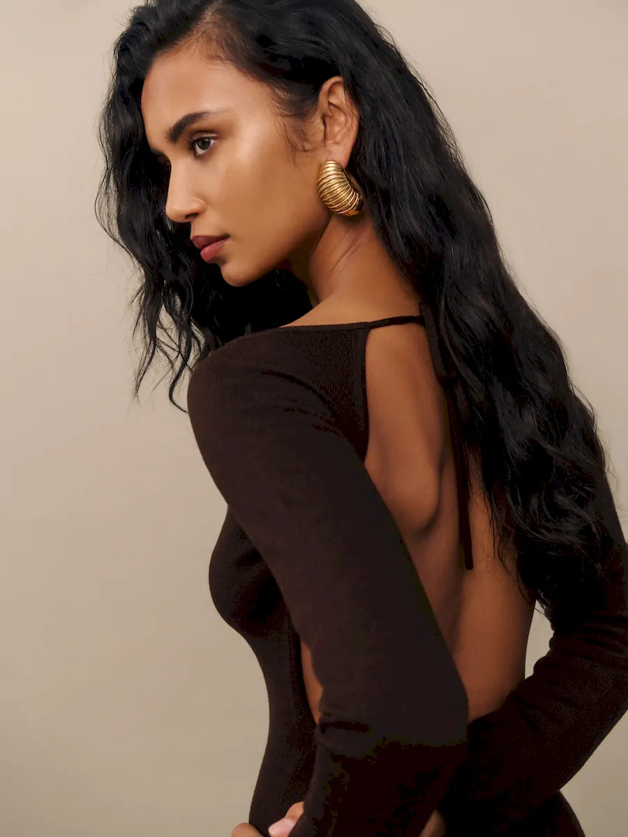 The model is wearing a size XS and is 5’10”, 23.5″ waist, 34″ hips, 32″ bust.