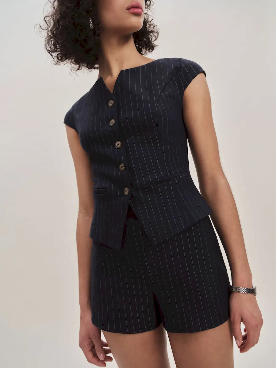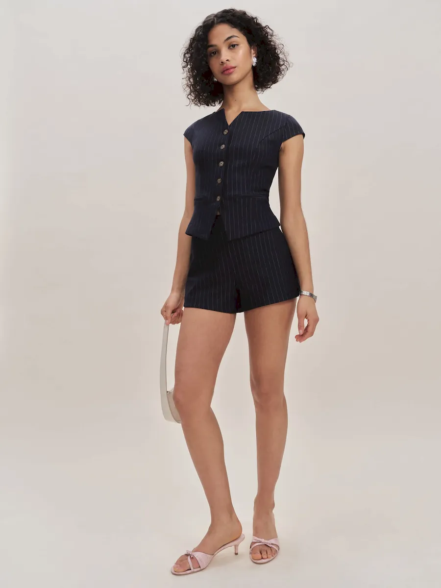 The model is wearing a size XS and is 5’7.5″, 23″ waist, 36″ hips, 31″ bust.