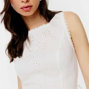 The model is wearing a size 0 and is 5’9″, 23″ waist, 34″ hips, 32″ bust.