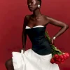 The model is wearing a size XS and is 5’9″, 24″ waist, 34″ hips, 32″ bust.