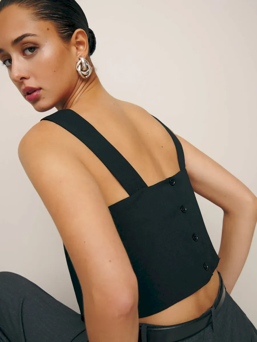 The model is wearing a size XS and is 5’8″, 23″ waist, 35.5″ hips, 30″ bust.