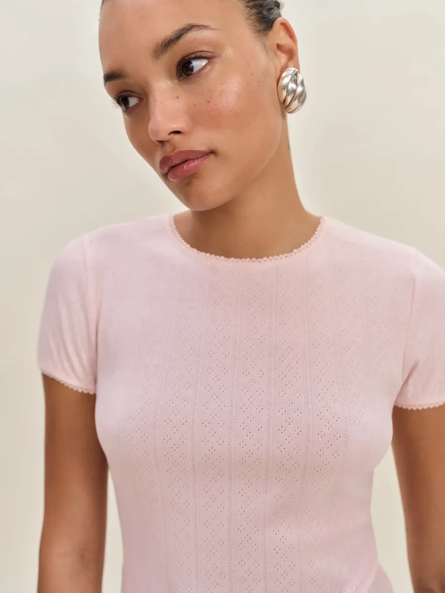 This is a medium weight, knit pointelle fabric made from 100% Organically grown cotton.