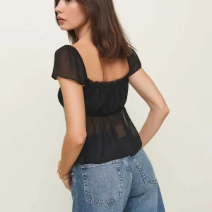The model is wearing a size 0 and is 5’9″, 24″ waist, 34″ hips, 32″ bust.