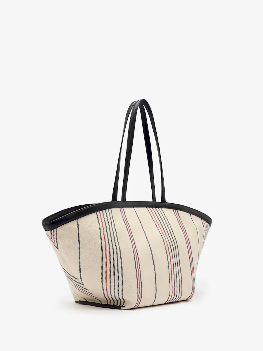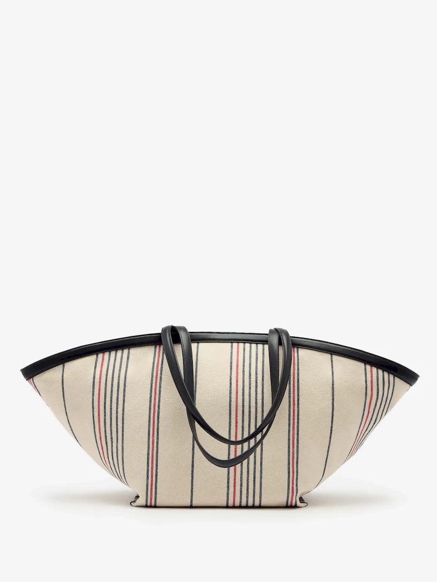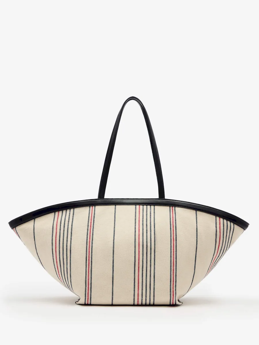 This recycled cotton woven stripe brings effortless prep vibes with fine navy and red lines that hit just right. Classic meets conscious in the best possible way. Spot clean. More onfabric & care.