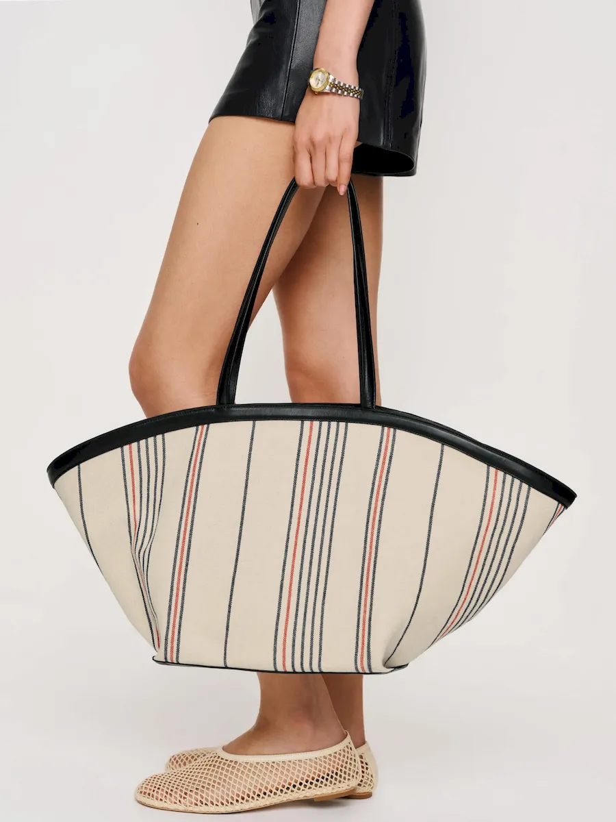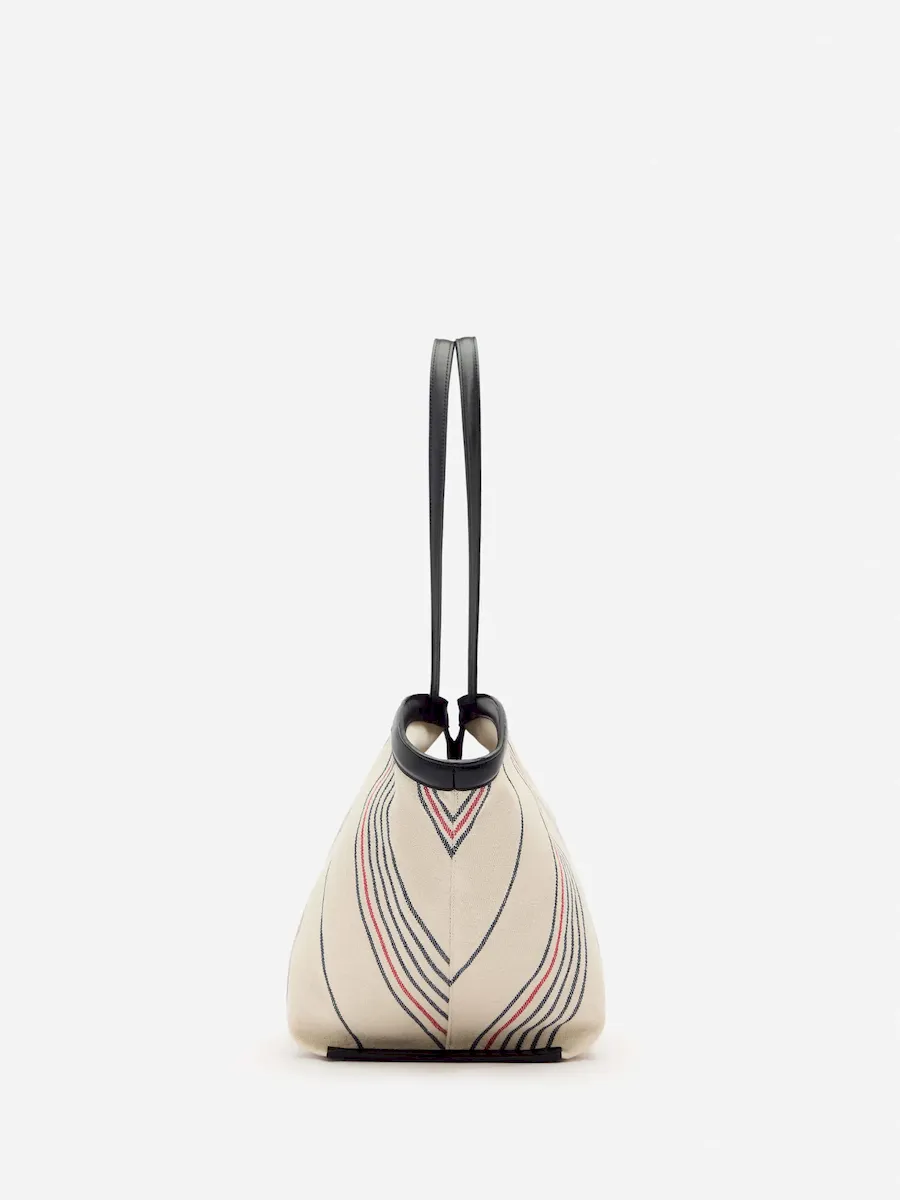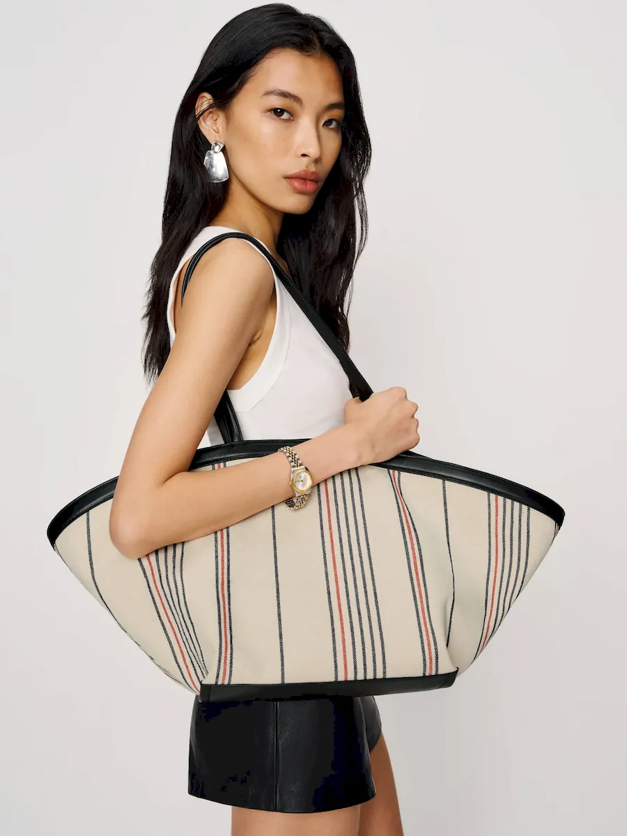 This recycled cotton woven stripe brings effortless prep vibes with fine navy and red lines that hit just right. Classic meets conscious in the best possible way. Spot clean. More onfabric & care.