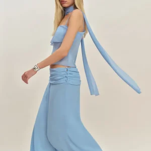 The model is wearing a size 0 and is 5’10”, 24″ waist, 35″ hips, 31″ bust.