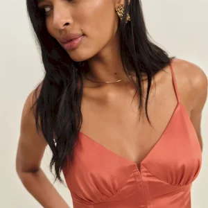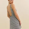 The model is wearing a size 0 and is 5’11”, 24″ waist, 35″ hips, 31″ bust.