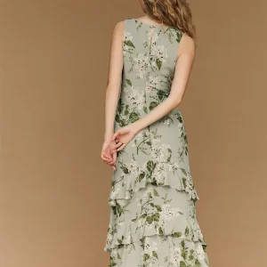 The model is wearing a size 0 and is 5’10”, 23″ waist, 35.5″ hips, 32.5″ bust.